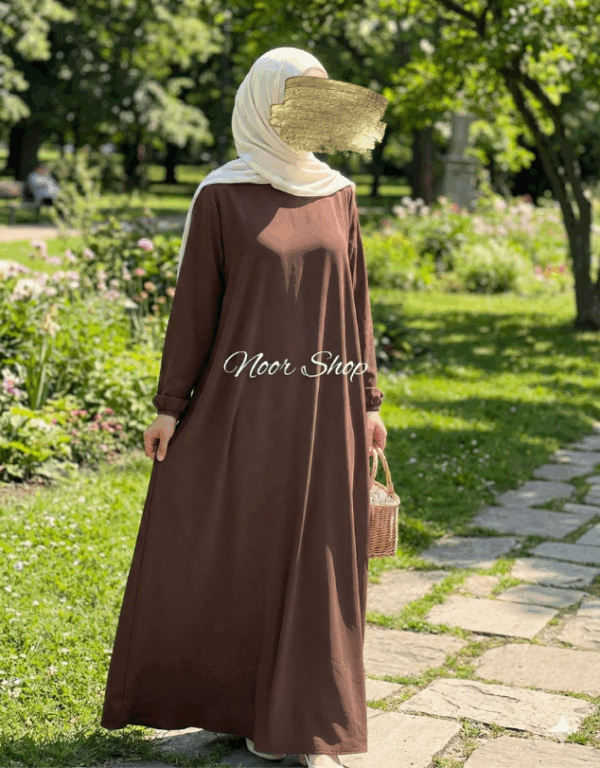 Schlichte und elegante Abaya in warmem Schokobraun. Leichter, blickdichter Stoff – perfekt für Alltag, Gebet und warme Tage.
