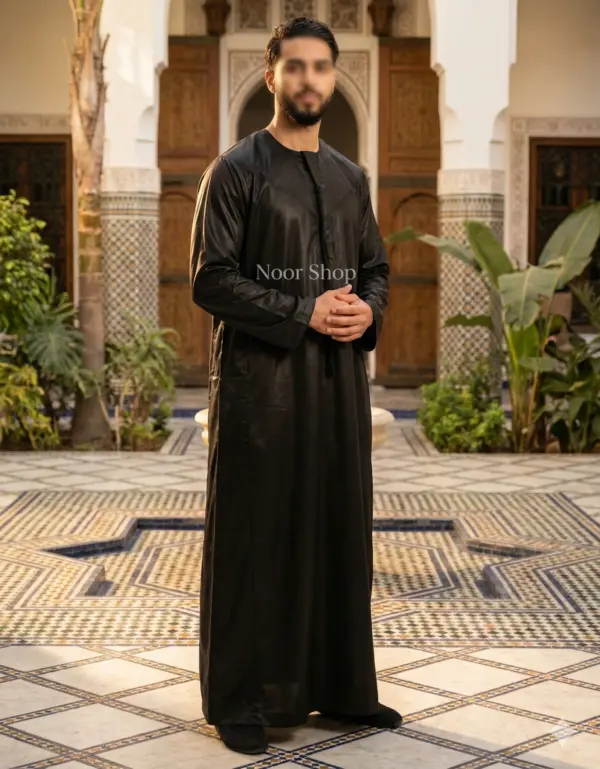 Dieser schwarze Herren Thobe von Noor Shop verbindet traditionellen Stil mit moderner Eleganz. Der hochwertige Stoff besitzt einen dezenten Glanz, der dem Jubba eine edle, hochwertige Optik verleiht – perfekt für Hochzeiten, Feiern, Īd, Freitagsgebete oder besondere Auftritte.