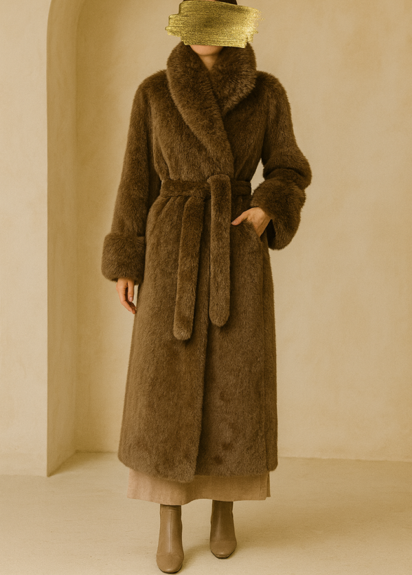 • Luxuriöser Kunstfell-Mantel in warmem Braun