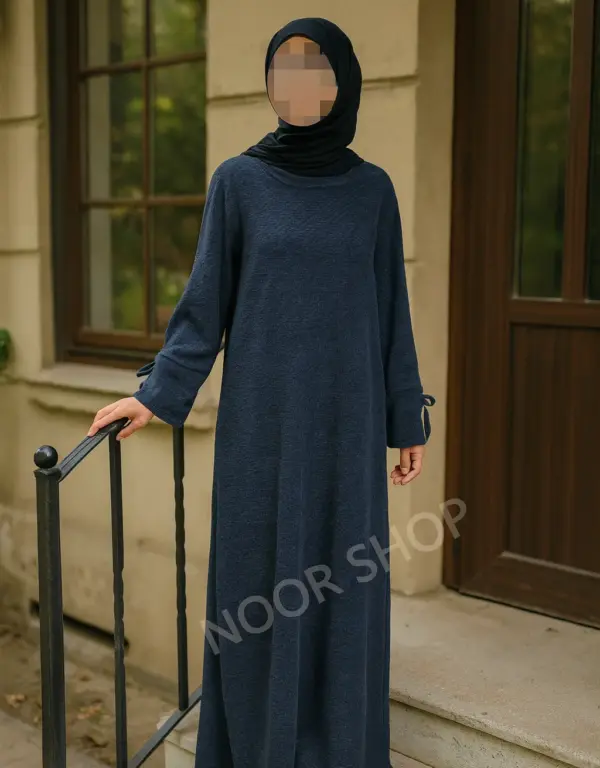 Das Modell „Soft Elegance“ bietet maximale Bewegungsfreiheit, ein warmes Material und eine klassische A-Linie, die schmeichelhaft fällt. Die Bindedetails am Ärmel verleihen dem Kleid eine feminine Note, während der dezente Rundhalsausschnitt vielseitig kombinierbar bleibt. Ideal für hijabfreundliche, elegante Outfits – ob casual oder chic.